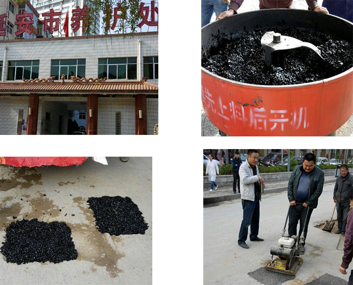 BMH冷拌冷鋪瀝青混合料,是通過一定的技術措施,在石料無需加熱的情況下(石料干燥率必須達到85%以上)通過技術手段在150°C~ 160°C的基質瀝青中加入一定量的冷拌冷鋪瀝青添加劑,完成石料與瀝青的裹覆,從而使其達到路用效果。在長達10年的應用范圍內,此材料無車轍、無擁包、無裂紋。
