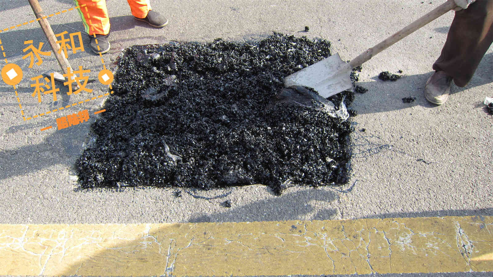 路陸邦冷補料研發初期是基于路面養護、應急搶險和小面積攤鋪需要,為解決因傳統瀝青冷補料質量存在的無法快速固化且防水性極差,養護修補成本大、高污染、應急搶修不及時等問題。西安永和通過獨有的表面活性劑技術手段,在瀝青中加入一定量的冷補添加劑,研發出新型高粘速凝防水冷補料,使其達到更好的路用效果。