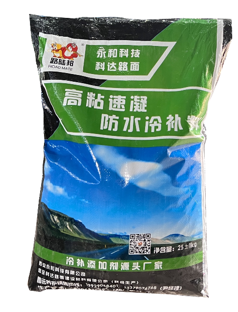 路陸邦高粘速凝防水冷補料可全天候使用。適用于任何天氣和環境下修補各種不同類型的道路面層,如瀝青混凝土道路、水泥混凝土道路、停車場、橋梁伸縮縫等攤鋪修補。攤鋪壓實后可在24小時內固化。在行車和空氣的作用下與氮分子迅速反應,使瀝青部分塑化,通過反復的碾壓,加上化學手段,使冷補混合料顆粒之間的分布更加緊密,空隙率減少,增強其防水性。
