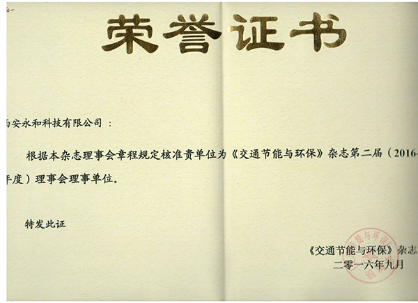 熱烈祝賀“西安永和科有限公司”成為《交通節能與環保》雜志理事會理事單位